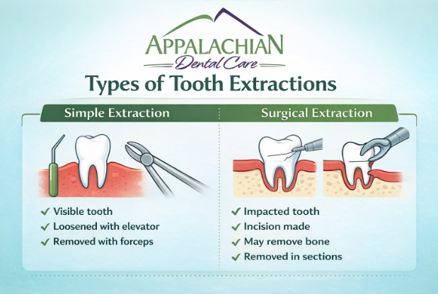 Wisdom teeth often cause pain, crowding, or infection if they don’t have enough room to emerge properly. At Appalachian Dental Care, our friendly team provides safe, effective wisdom teeth extractions to protect your oral health and prevent future complications.